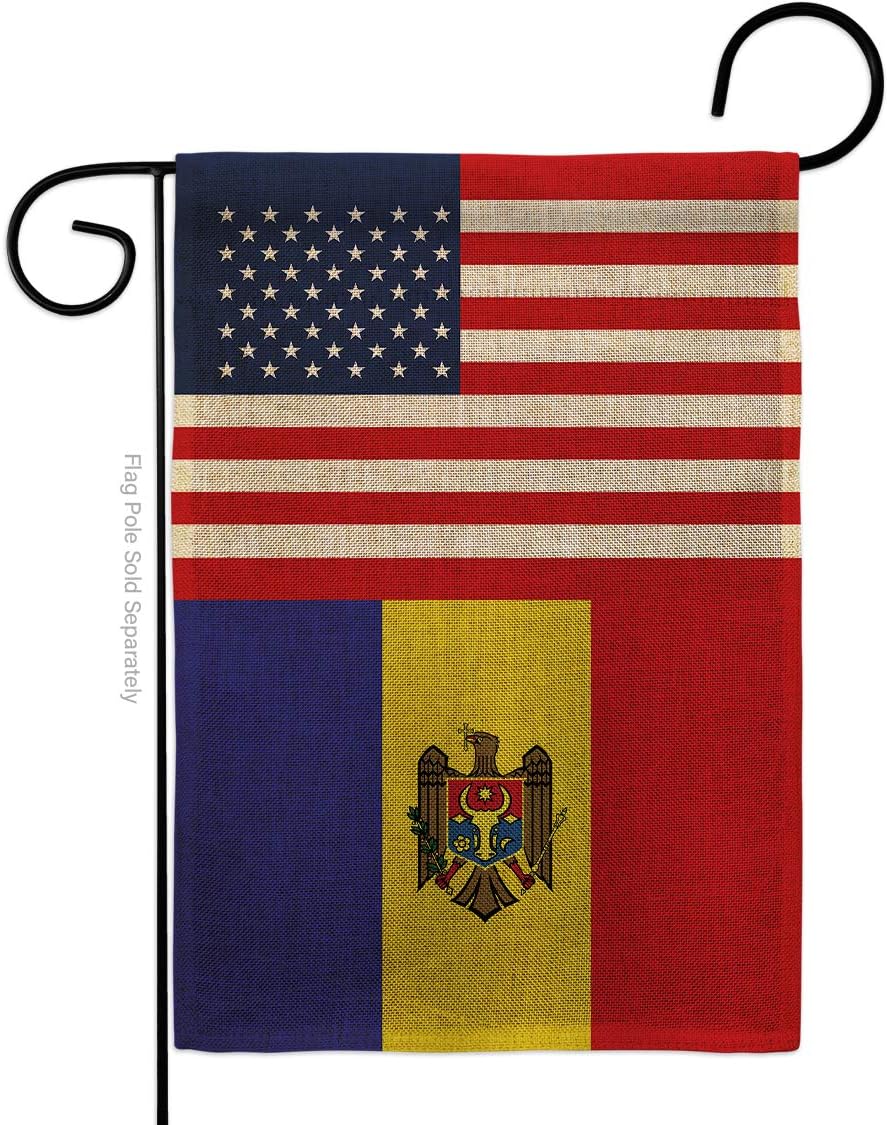 Moldova US Friendship Garden Flag Set Wall Holder Regional USA American Alliance World Country Particular Area Small Decorative Gift Yard House Banner Made In 13 X 18.5